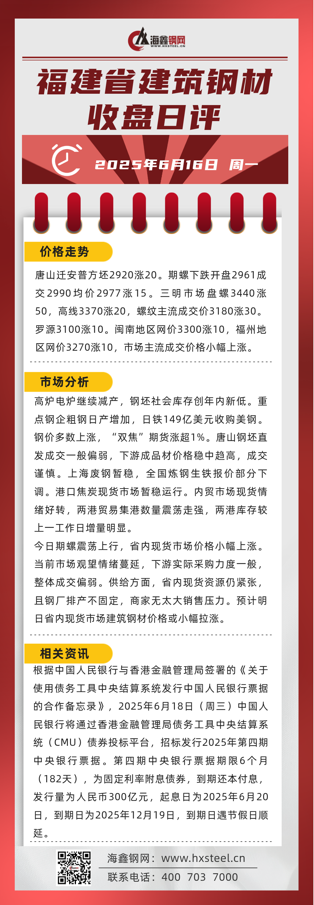 6月16日福建省內建筑鋼材收盤日評
