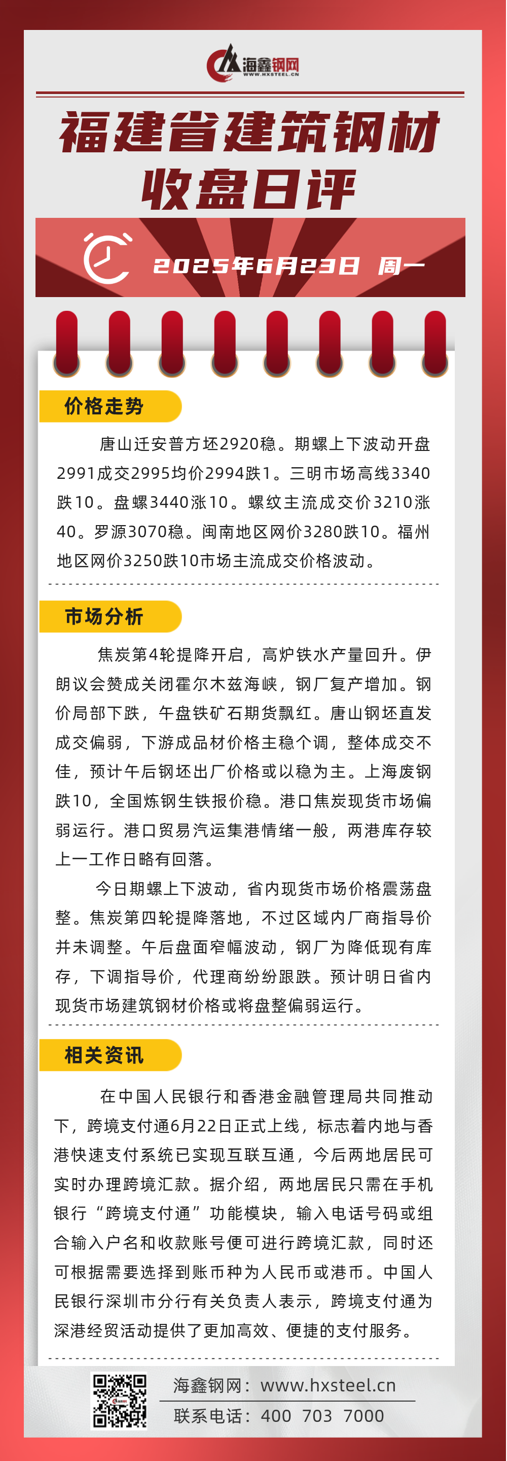 6月23日福建省內建筑鋼材收盤日評
