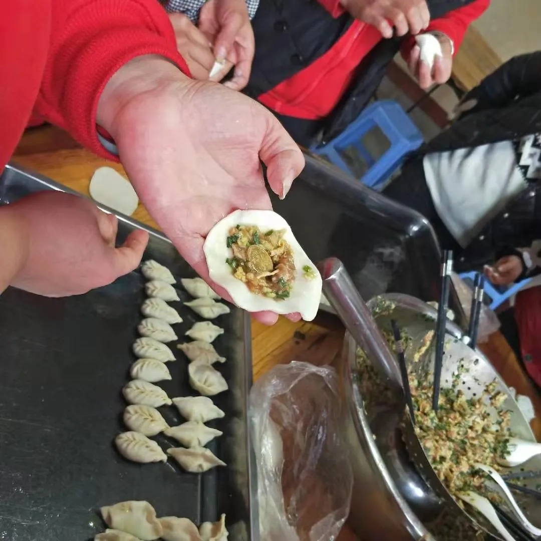 上午公司食堂工作人員就備好了餃子皮、肉餡、白菜、雞蛋、韭菜、硬幣等活動(dòng)所需材料,下午大家?guī)霞覍冽R聚食堂,挽起袖子,分工有序,各顯身手。有的調(diào)餡,有的打蛋,有的切菜,忙的不亦樂(lè)乎,很快就塑造出各類(lèi)帶有家鄉(xiāng)風(fēng)格的餃子,餃子的形狀也是創(chuàng)意百出,元寶形、耳朵形、月牙形、麥穗形等等,各式各樣。大家圍聚在一起,分享包餃子經(jīng)驗(yàn),講述自己家里的過(guò)年習(xí)俗及新年愿望,笑語(yǔ)不斷,氣氛和諧,歡聲笑語(yǔ)充滿著整個(gè)食堂操作間,手里捏出的每一個(gè)餃子都包含著職工間濃濃的關(guān)愛(ài)和對(duì)新年滿滿的祝福。